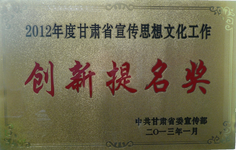 甘肅省宣傳思想文化工作創(chuàng)新提名獎(jiǎng)