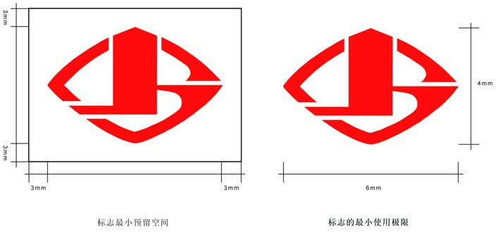 為了保證標(biāo)志在任何場合、環(huán)境中使用的舒適性,規(guī)范性和方便性,標(biāo)志的最小使用范圍為6×4cm,在使用中不得小于此最小范圍。
