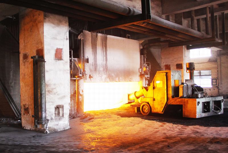 搗爐機(jī)正在對(duì)錳硅礦熱爐內(nèi)的料面進(jìn)行維護(hù)